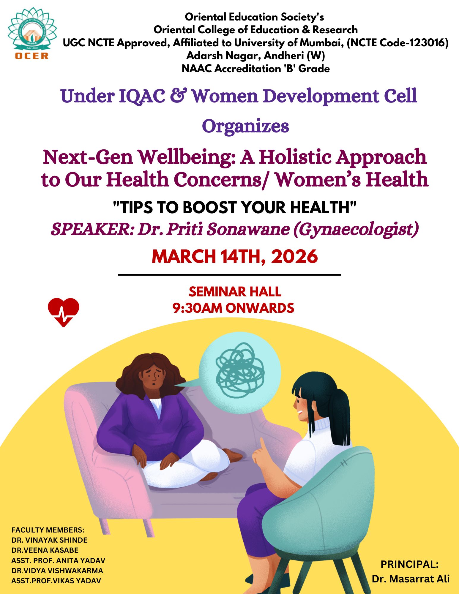 The Women’s Development Cell (WDC) at Oriental College of Education & Research focuses on empowering women and promoting gender equality within the campus and the broader community.