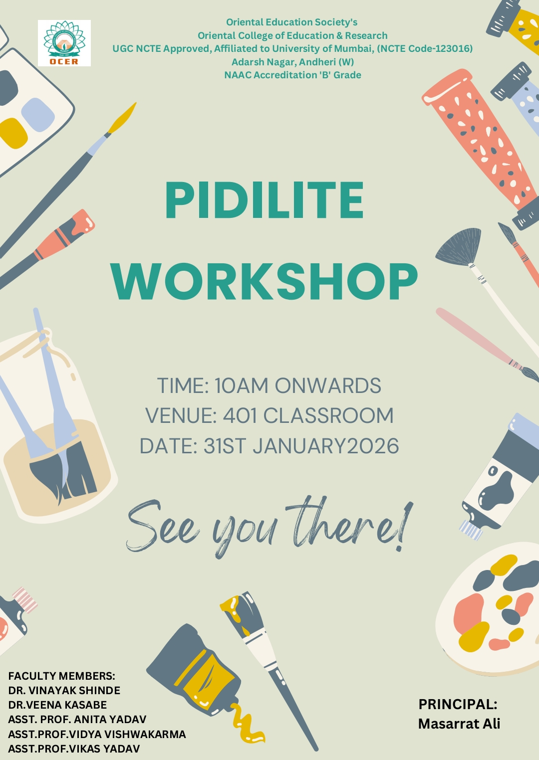 Oriental College of Education and Research (OCER), Andheri, organized a two-day Workshop on Art & Craft in collaboration with Fevicryl Pidilite from 16th to 17th May 2024. The workshop provided an excellent platform for students to explore and showcase their artistic talents through various creative projects.
